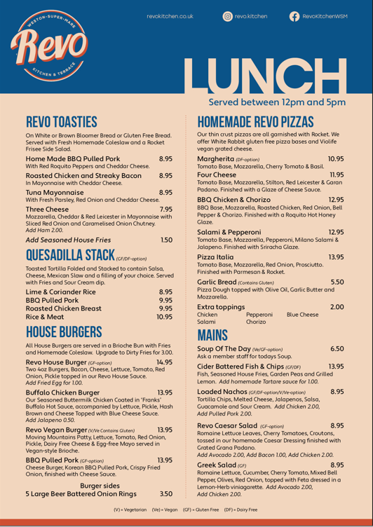 Welcome to Revo Kitchen, a culinary gem nestled in Marine Parade, Weston-super-Mare. The menu is a delightful blend of flavors, showcasing their signature Revo Burger at £16.50 and tantalizing BBQ Pulled Pork at £15.50, all prepared with fresh, high-quality ingredients. Offering a variety of plant-based options like the Pulled Mushroom Burger, this kitchen ensures everyone finds something delectable.